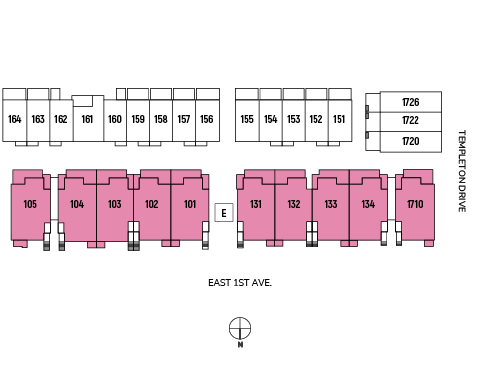 Homes: 101, 102, 103, 104, 105, 131, 132, 133, 134, 1710